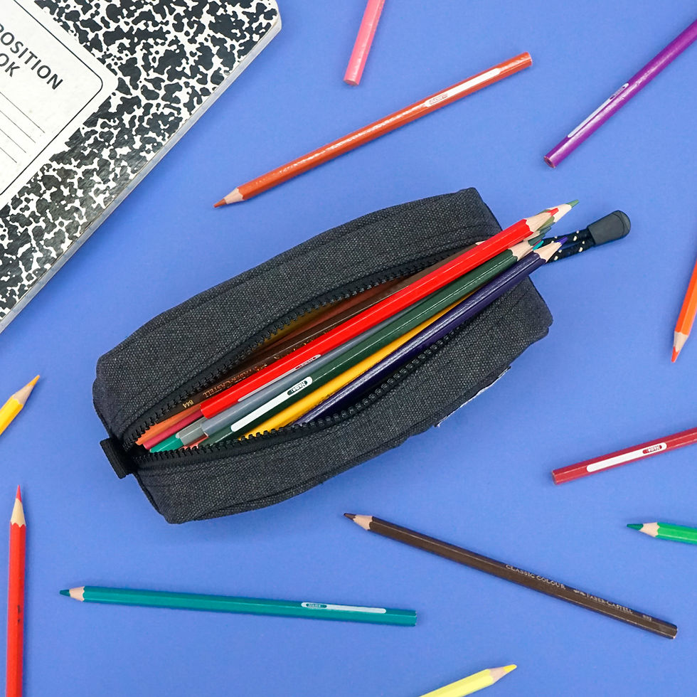 Rough Enough Canvas Big Black Stationary Pen Pencil Case Organizer Bag Zipper Pouch Storage Box Hold